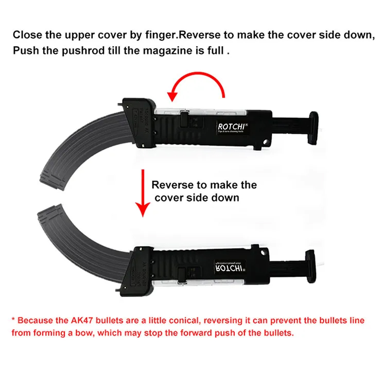 AK47 အတွက်မဂ္ဂဇင်း Speed Loader ● 7/20/30 သို့မဟုတ် ပို. ပိုကြီးသော Ak မဂ္ဂဇင်းသို့ 7.62x39mm Cartridges များကိုအသုံးပြုခဲ့သည်။ ● groove ထဲရှိအရာတစ်ခုအပြည့်အဝဖြည့်စွက်ပါ။ Pusher ကိုတွန်းအားပေးပါ။ ●မိန်းကလေးတစ်ယောက်ကအရမ်းမြန်မြန်လုပ်နိုင်တယ်။ ●အားကောင်းတဲ့ခန္ဓာကိုယ်။ Loader အတွင်းရှိ Cartridges များကို Ranspant Cover မှတဆင့်မြင်နိုင်သည်။ သိုလှောင်မှုအတွင်းမဖွင့်နိုင်သည့်အဖုံးကိုသော့ခတ်သည်။ # မရေးတော့သည့်အခါမဂ္ဂဇင်းမှအရာတစ်ခုကိုမဂ္ဂဇင်းမှလည်း 0 င်စေနိုင်သည်။