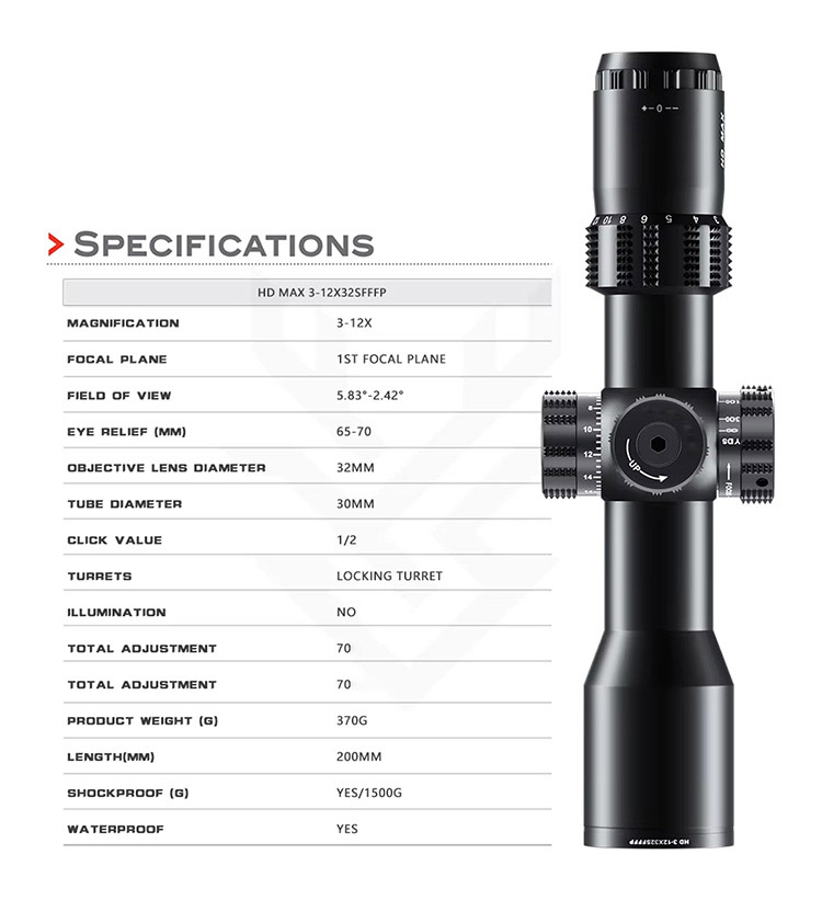 Max 3-12x32SF FFP FFP HD Lenes High Lets Hold Monocular Teescope လက်ကား