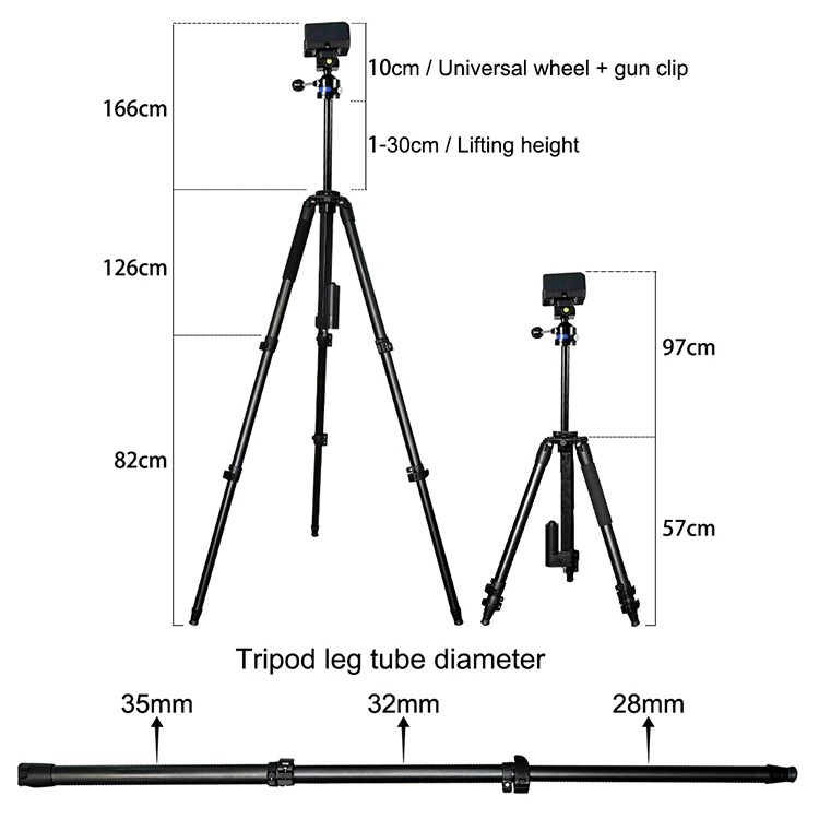 OEM လူမီနီယမ် tripod, ကြာရှည်ခံသည့်သေနတ်တောင်များ, လျှပ်စစ်စွမ်းအားချိန်ညှိနိုင်သောအမြင့်, အမဲလိုက်ခြင်း, ရိုက်ကူးခြင်းနှင့်ပြင်ပလှုပ်ရှားမှုများအတွက်သင့်တော်သည်