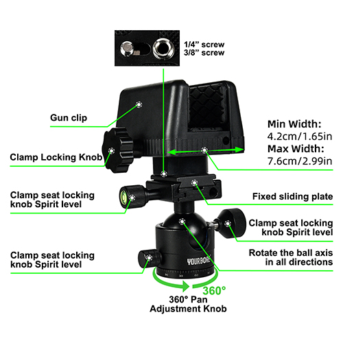 OEM CNC အလူမီနီယမ် 360 ဒီဂရီဘောလုံးကိုသေနတ်ဖြင့်ပစ်သတ်ခြင်း Saddle Setting Hunting Stick Monopod Tripod အတွက် Saddle အနားယူချိန်