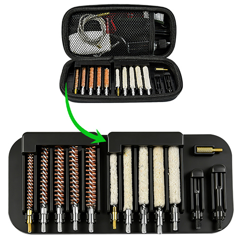 ရိုင်ဖယ်သန့်ရှင်းရေးကိရိယာတွင် အရွယ်အစား ၅ ခုပါဝင်သည် (.၁၇၇၊ .၂၂၊ .၂၄၃၊ .၂၇၊ .၃၀ ကယ်လိုရီ)၊ ကြေးစုတ်တံ၊ နှင့် ချည်ကြမ်း၊ ၅ချောင်း၊ ၂ချောင်း။ သဲ နှင့် အနက်ရောင် ရွေးချယ်နိုင်သည် ။