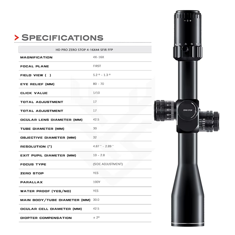 သုညမှတ်တိုင် 4-16x44 SFIR FFP - 30 မီလီမီတာ HD Light-transmitting Zero Nothing Scope FFP